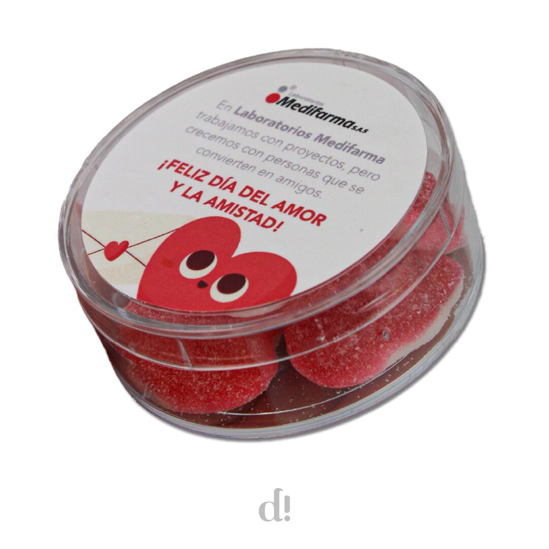 Un detalle dulce que transmite cercanía y gratitud. Estas gomitas personalizadas en empaque transparente son perfectas para campañas internas, fechas especiales o programas de bienestar corporativo.