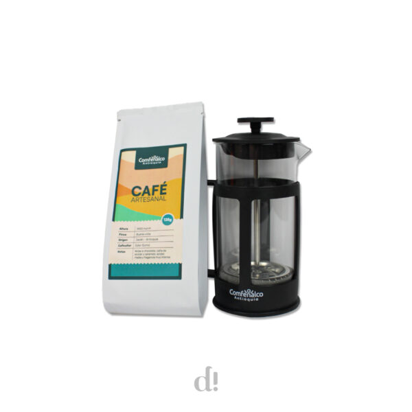 El detalle ideal para celebrar la cultura cafetera colombiana y compartir experiencias únicas alrededor de una buena taza de café. Este kit incluye una prensa francesa de alta calidad y un café artesanal de origen antioqueño, cuidadosamente seleccionado para resaltar notas de chocolate, caramelo y cítricos.
