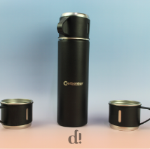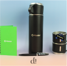 Este kit corporativo, desarrollado para Colbantur, está compuesto por una libreta, un lapicero, un termo para café con dos tazas y un llavero, concebidos como elementos funcionales y representativos para el uso diario.