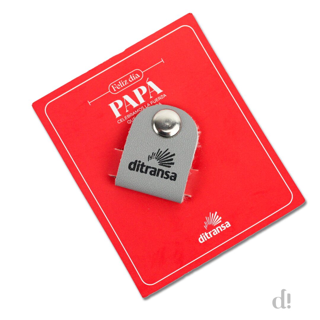 Un detalle práctico y con estilo pensado para celebrar a los papás en su día. Este organizador de cables en cuero sintético, con grabado institucional y broche metálico, permite mantener en orden audífonos, cargadores o cables USB, combinando funcionalidad y elegancia corporativa.