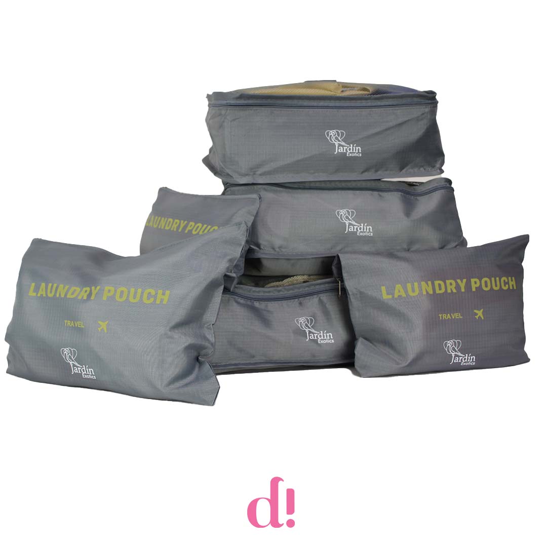 Un conjunto diseñado para acompañar cada desplazamiento con orden y practicidad. Este set de organizadores, desarrollado para Jardín Exotics, incluye diferentes tamaños que permiten clasificar y proteger prendas, accesorios y objetos personales durante el viaje.