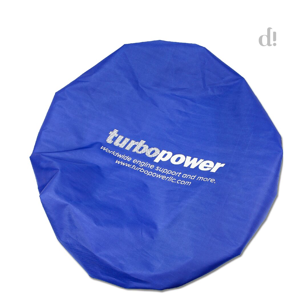 Su confección en tela de alta durabilidad y su ajuste preciso garantizan un cuidado óptimo de las piezas mecánicas, reflejando la calidad y profesionalismo de TurboPower, empresa especializada en soporte y mantenimiento de motores aeronáuticos a nivel mundial.