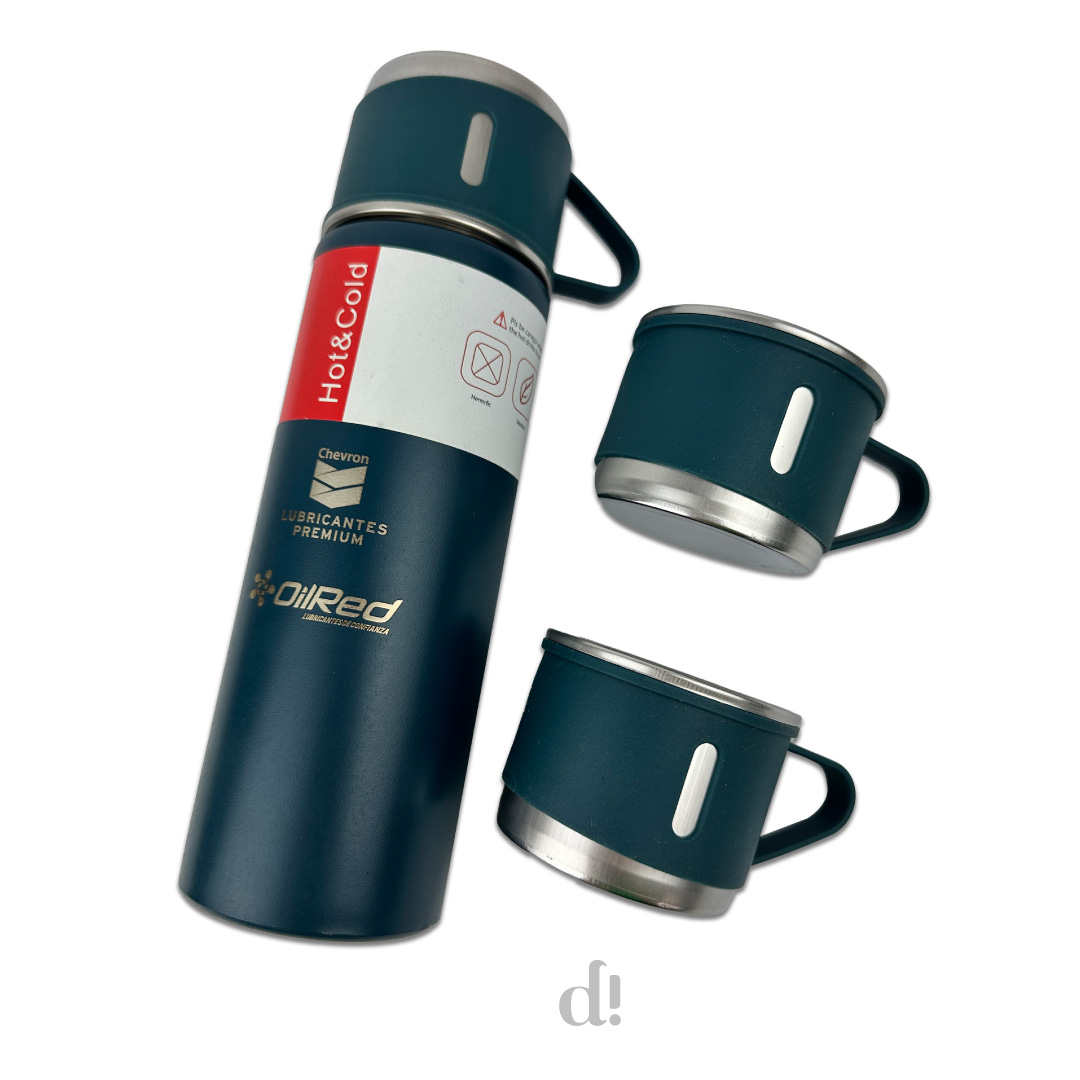 Termo Metálico con 2 Tazas – OilRed – Chevron