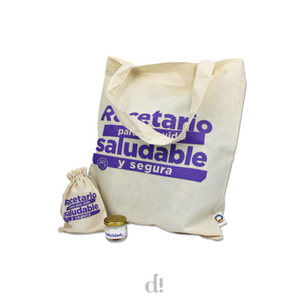 Bolsa ecológica reutilizable: amplia, resistente y personalizada con el mensaje de la campaña.